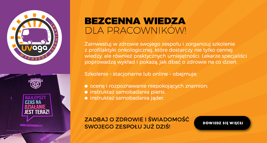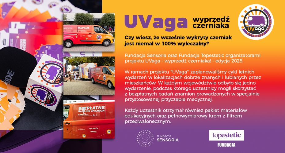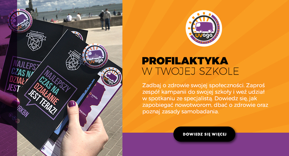 umożliwiamy bezpłatne badania pod kątem czerniaka skóry: w latach 2014-2019 - w czarnym namiocie RKBN, m.in. podczas Letniej Akcji Edukacyjnej, a w 2018 roku - w mobilnym busie, RakTRACKU, w ramach projektu UVaga - wyprzedź czerniaka!; jesteśmy obecni na plażach, podczas festiwali muzycznych i imprez plenerowych związanych ze zdrowym stylem życia;